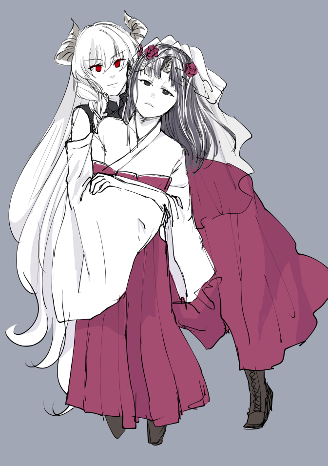 牡丹(白髪)と手児奈(黒髪)